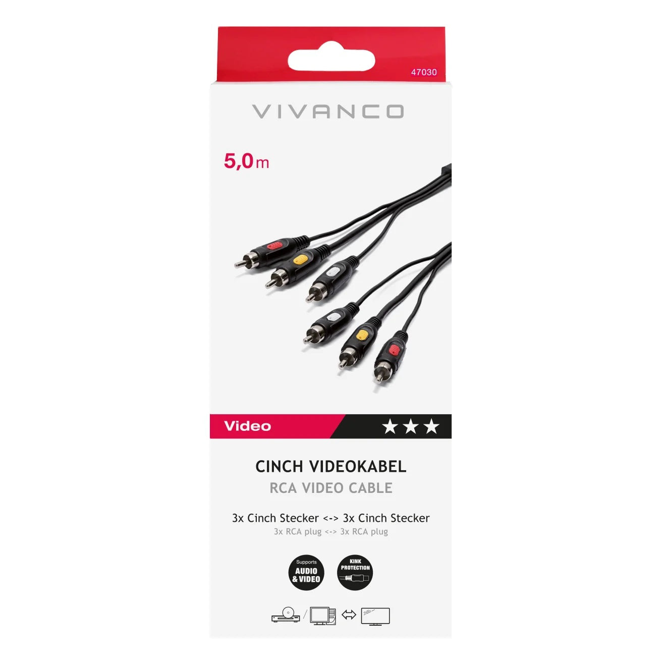 VIVANCO Hochwertige Cinch Videoverbindung, Stereo, 3x Cinch Stecker auf 3x Cinch Stecker, 5 m – Für klare Audio- und Videoübertragung