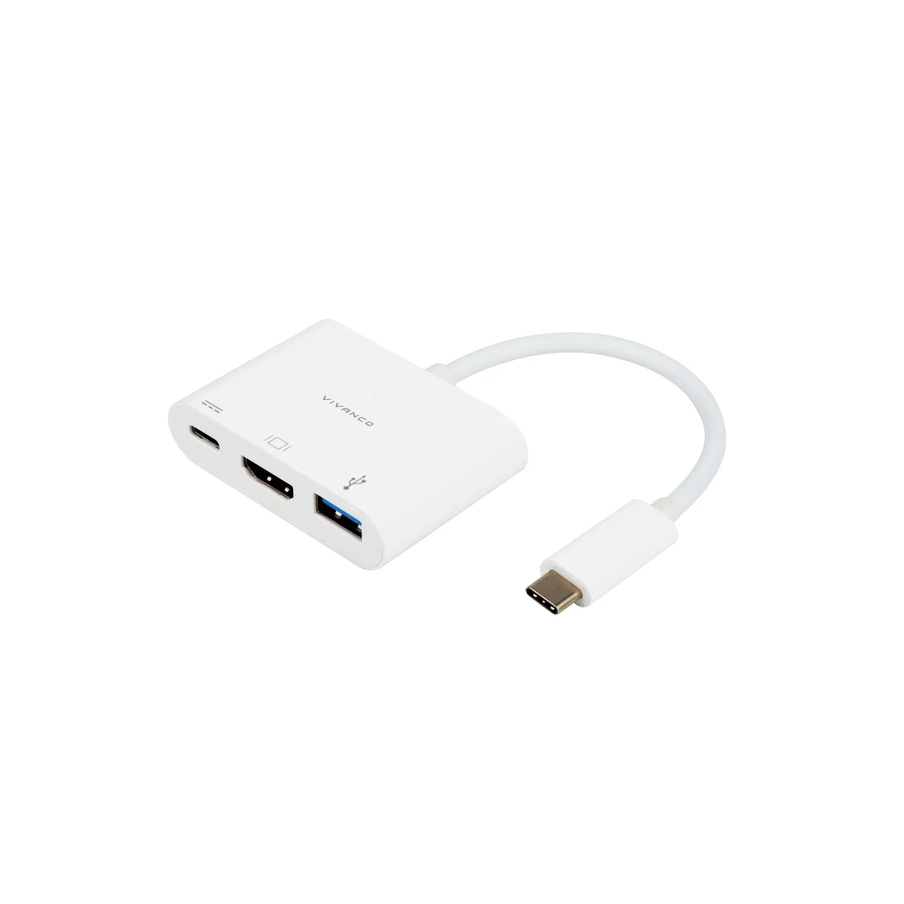Hochwertiger VIVANCO USB Type C HDMI Adapter 3in1, 1080p, USB 3.1 Super Speed, Ladefunktion, 0,10 m