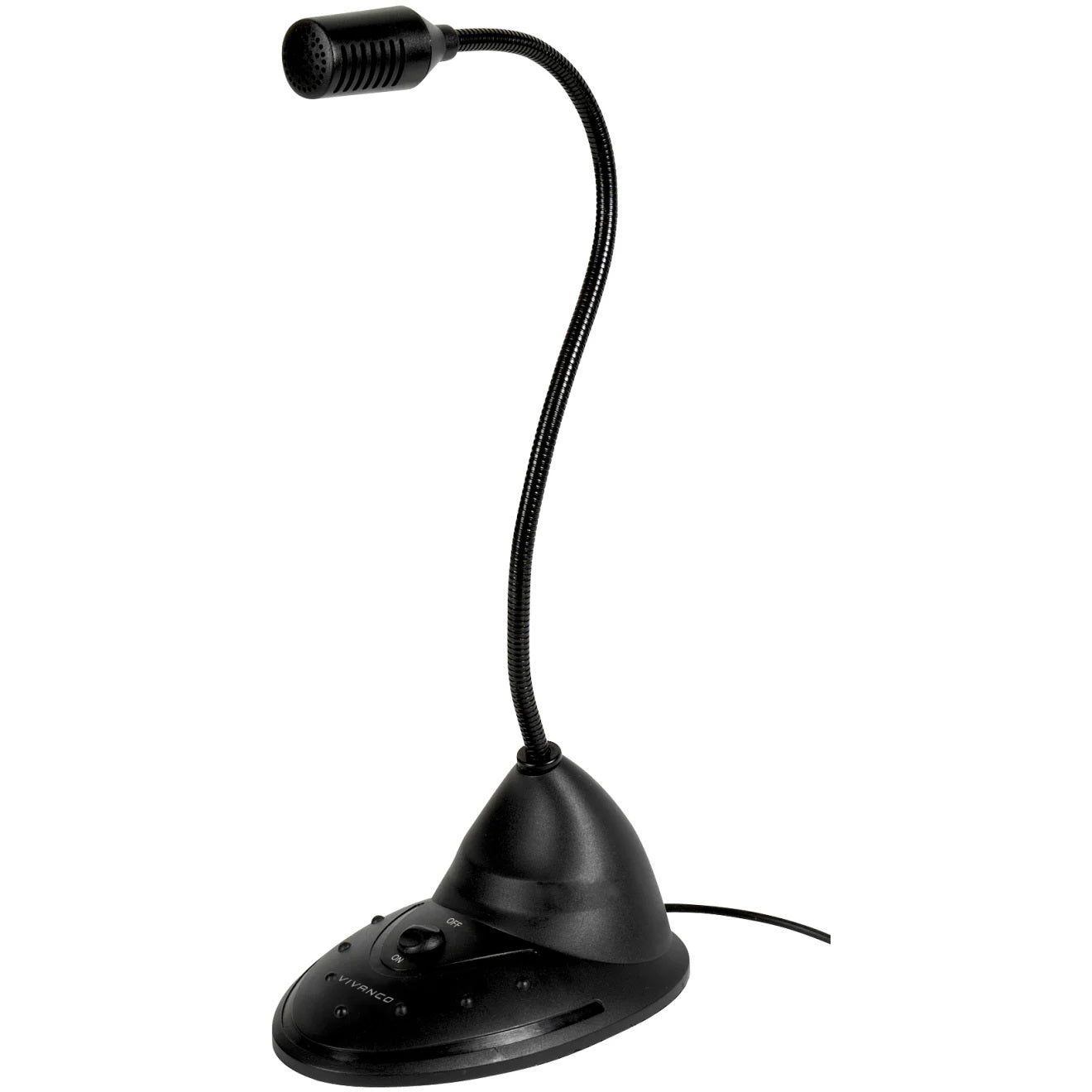 VIVANCO Hochwertiges Tischmikrofon, kompatibel mit 3,5 mm Geräten, Schwanenhals, Stummschalter, höhenverstellbar, 1,8m Kabel