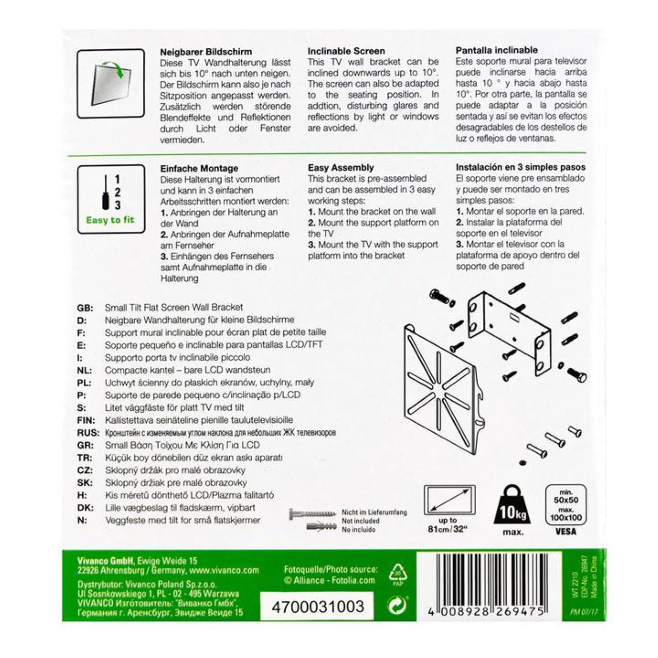 Machen Sie mehr aus Ihrem Wohnraum – mit der universellen TV-Wandhalterung von VIVANCO für Fernseher bis zu 32 Zoll. Die robuste Konstruktion, das schlanke Design und die neigbare Halterung bieten eine elegante und platzsparende Lösung für Ihr Entertainment-Setup.
