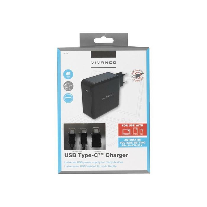 Entdecken Sie das VIVANCO USB Type-C Ladegerät mit 45W für effizientes Laden und umfassenden Adapter. Optimale Leistung garantiert.