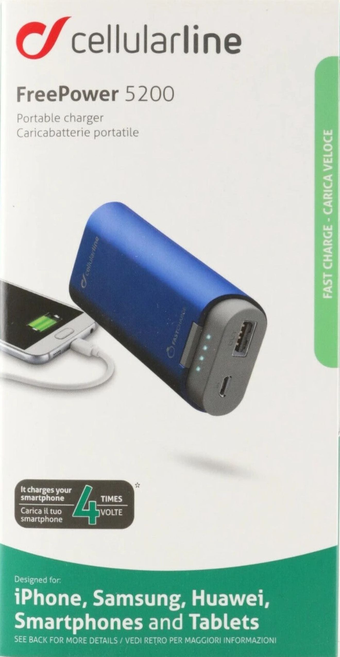 Cellularline Hochwertiges Powerbank mit Schnelllade-Funktion, Kapazität 5200 mAh, USB-C, Blau