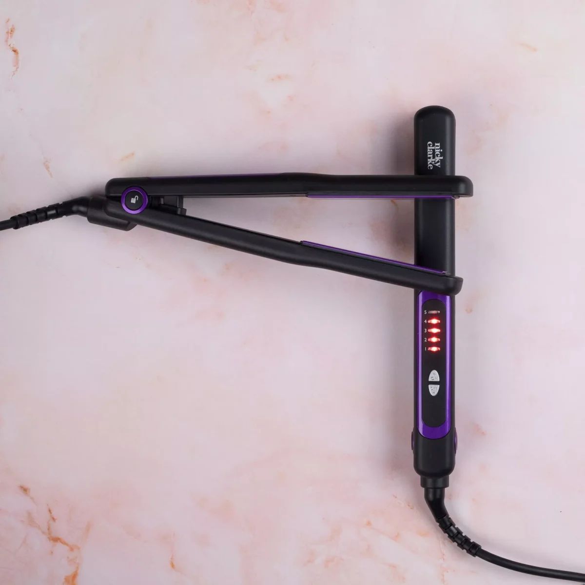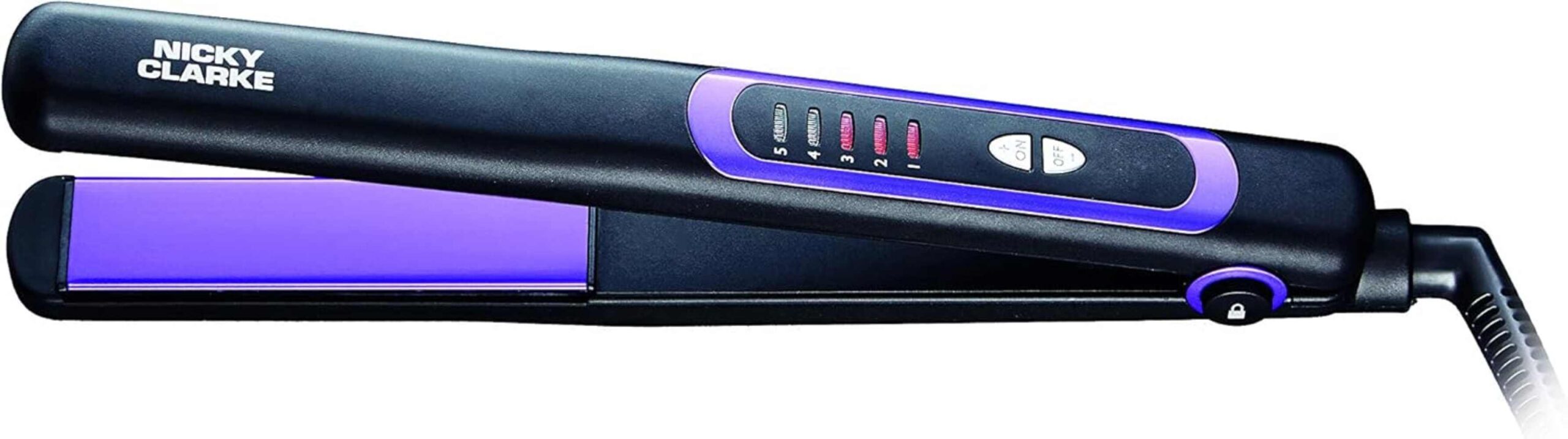 Nicky Clarke ultimatives Haarglätteisen mit Turmalin Keramikplatten, digitale Temperaturkontrolle bis 230 Grad, violett, reisegeeignet